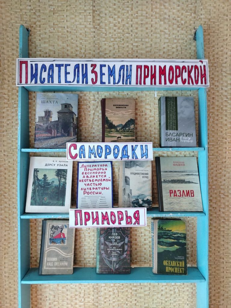В биб-ке с. Муравейка оформлена кн.выставка, на которой представлены книги приморских талантливых писателей, которые стояли у истоков беллетристики. Уникальный писатель В. Арсеньев обследовал весь юг